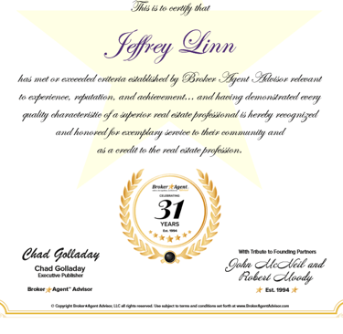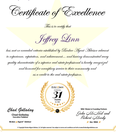 with Jeffrey Linn TOP 100 Broker in The USA Awards Winner